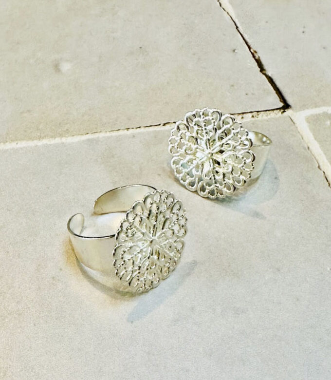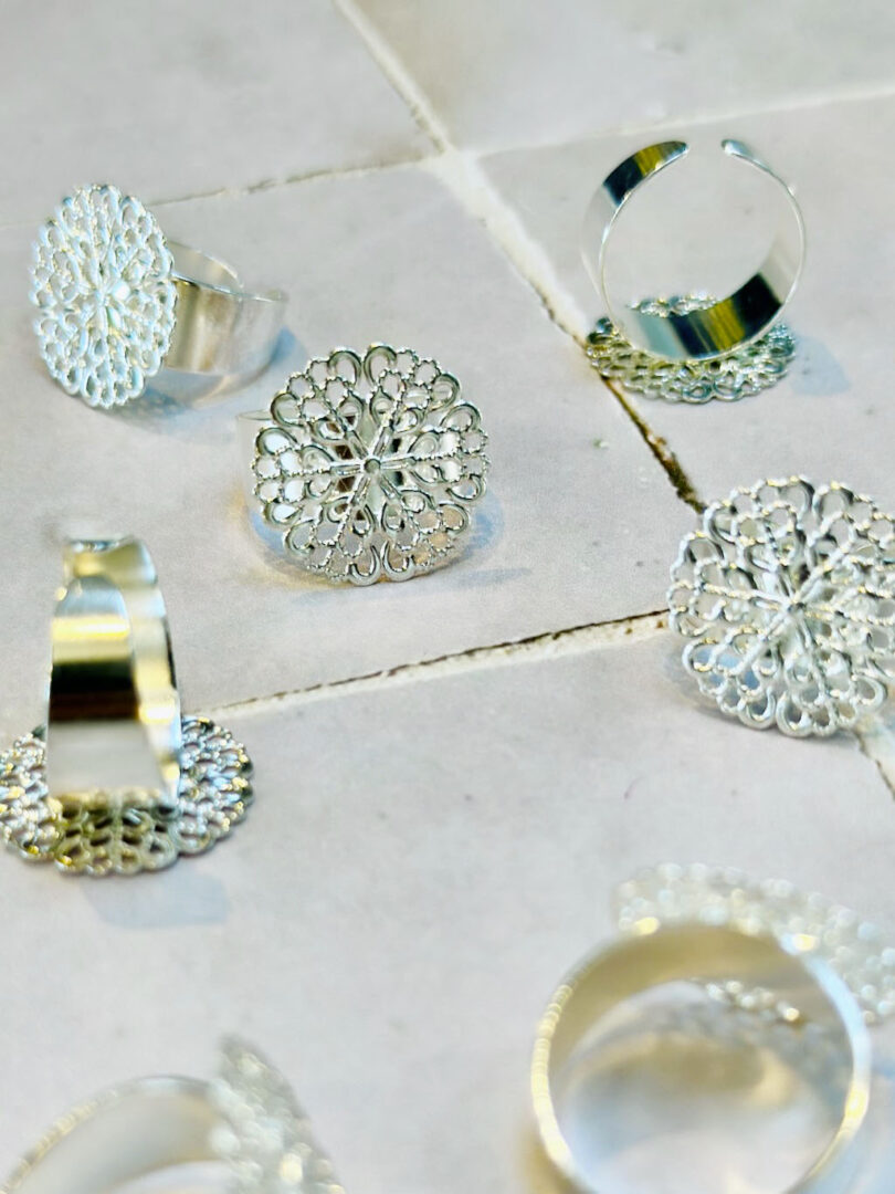 Lots de 27 montures de bagues en métal argenté (7,22€ les 10 chez Perles Box)